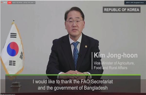한편, 우리나라 수석대표로 영상으로 참석한 김종훈 농식품부 차관은 기조발언을 통해, 아시아 지역에서 세계 영양부족 인구의 절반 이상인 4억 18백만명이 영양부족으로 고통을 겪고 있음을 언급하고, 식량원조를 비롯하여 지능형 농장(스마트팜), 기후 지능형(스마트) 농업 등 분야를 중심으로 공적개발원조(ODA)를 통해 아시아 태평양 지역에서의 협력을 더욱 확대해 나갈 것임을 강조했다.