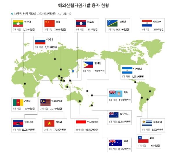 산림청은 해외 산림자원 개발 사업 민간투자 지원을 위해 47억 원 규모의 정책 자금을 융자 지원할 계획이라고 밝혔다.