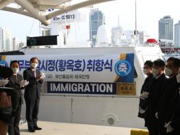 법무부는 4. 1일 16:40 부산항부두에서 앞으로 해외로 출입항하는 선박을 대상으로 출입국관리 업무를 수행하게 될 법무부 1호 감시정인 “황옥호”의 취항식을 가졌다.