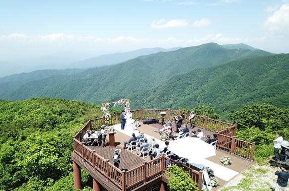 특히 소백산 연화봉대피소의 산상결혼, 한려해상 생태탐방원의 숲속결혼, 다도해해상 순찰선박의 선상결혼 등 이색 결혼식 장소도 준비되어 있다.