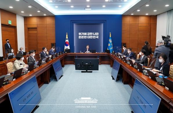 문재인 대통령은 오늘 오후 청와대에서 '탄소중립 5년의 성과와 과제'를 주제로 수석보좌관회의를 주재했다.