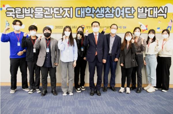 행정중심복합도시건설청은 국민과 소통하고 함께 만들어가는 국립박물관단지 건립을 위해 ‘국립박물관단지 대학생 참여단’을 구성하고 13일 발대식을 개최하였다.