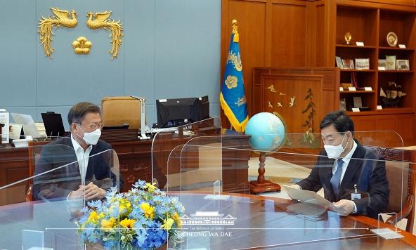 문재인 대통령은 18일 오후 김오수 검찰총장을 70분간 면담했다. 김오수 검찰총장은 문재인 대통령에게 법률안 내용에 대한 우려를 설명하고, 단순히 법률안에 대해 반대만 한 게 아니라 대안도 제시했습니다. 김 총장은 충분히 의견을 개진했고, 문 대통령은 경청했다.