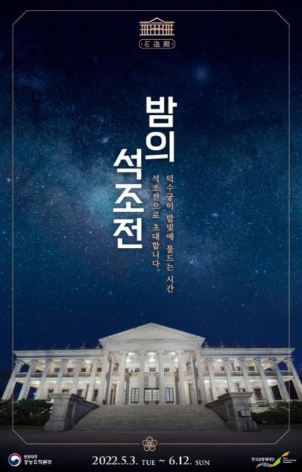 문화재청 궁능유적본부와 한국문화재재단은 2022년 ‘밤의 석조전’ 행사를 오는 5월 3일부터 6월 12일까지 36일간 월요일을 제외한 매일 오후 6시 30분부터 하루 3회 진행한다.