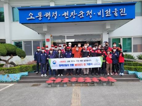 남부지방산림청 울진국유림관리소에서는 지난 4.11.(월)~ 4.18.(금)까지 울진군 8개 읍?면에(200개 기증) 화목보일러 연통 불티방지 캡 기증식을 가졌다.