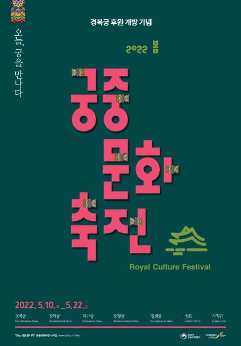 문화재청 궁능유적본부와 한국문화재재단은? '2022 봄 궁중문화축전'을 오는 5월 10일부터 22일까지 5대궁(경복궁·창덕궁·덕수궁·창경궁·경희궁)과 종묘·사직단 일대에서 13일간 개최한다. 특히, 올해 궁중문화축전은 경복궁 후원 개방을 기념하여 행사 범위가 확대되었다.