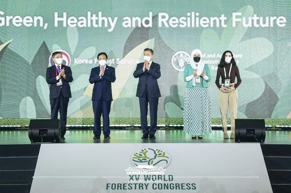 문재인 대통령은 오늘 서울 코엑스에서 열린 제15차 세계산림총회 개회식 기조연설에서 “숲과 인간이 상생하는 지속가능한 번영의 길로 함께 나아갈 수 있도록 선진국과 개도국이 서로 다른 여건을 이해하며 보다 적극적으로 협력하고 부담을 나누어야 한다”고 강조했다.
