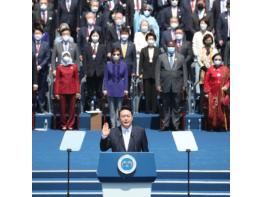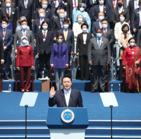 윤 대통령은 취임사에서 “이 나라를 자유민주주의와 시장경제 체제를 기반으로 국민이 진정한 주인인 나라로 재건하고, 국제사회에서 책임과 역할을 다하는 나라로 만들어야 하는 시대적 소명을 갖고 오늘 이 자리에 섰다”고 말했다.
