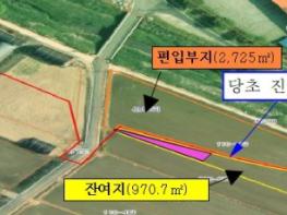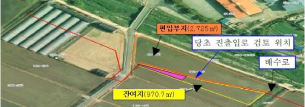 담당자는 잔여지 면적이 970.7㎡로 비교적 크고, 잔여지의 면적 비중도 원래 토지 면적의 26%로 작지 않으며, 전체적으로 트랙터 등 농기계의 회전이 가능해 잔여지 매수가 어렵다고 답변했다.