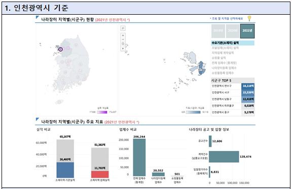이번 분석은 현재 서비스 중인 '지역별 나라장터 이용현황' 시각화서비스에 기반하여 진행한 것으로, 17개 시·도 중 서울특별시, 경기도, 충청지역(대전·세종·충남·충북), 호남지역(광주·전남·전북), 영남지역(부산, 울산, 경남, 대구, 경북)에 이은 마지막 분석결과다.