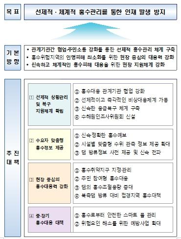 이러한 목표를 달성하기 위해 올해 중점적으로 추진할 환경부의 주요 홍수대책은 다음과 같다.
