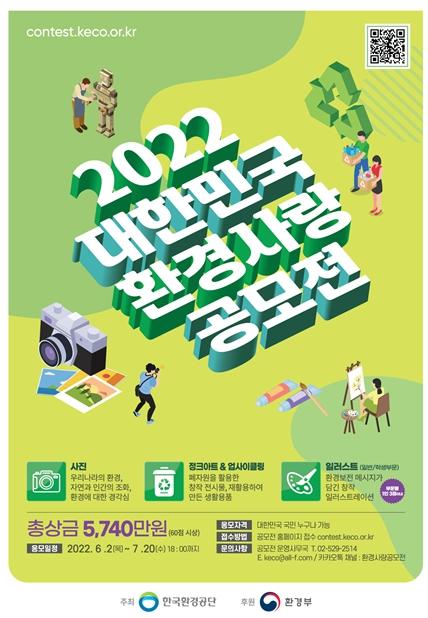 환경부 산하 한국환경공단은 '2022 대한민국 환경사랑공모전'을 개최한다.