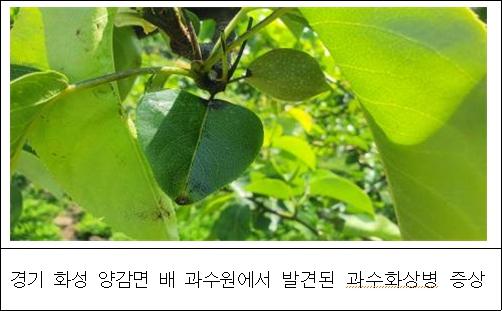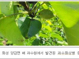 과수화상병이 신규 확진된 곳은 경기도 화성시 양감면에 있는 배 과수원 1곳(2.4헥타르, 7그루)이다.