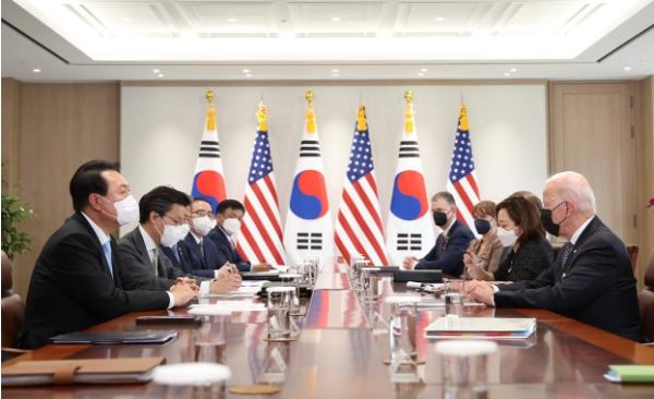 윤석열 대한민국 대통령은 조셉 R. 바이든 미합중국 대통령의 방한을 환영한다. 이번 정상회담은 대한민국 대통령 임기 중 미합중국 대통령과 가장 이른 기간 내 개최한 회담으로 기록되었다. 공동의 희생에 기반하고 우리의 깊은 안보 관계로 연마된 한미동맹은 계속해서 진화하고 확대되고 있다. 역내 평화와 번영의 핵심축인 한미동맹은 민주주의, 경제, 기술 분야에서 글로벌 리더인 양국의 중추적 역할을 반영하여 한반도를 훨씬 넘어 성장해 왔다. 기후변화와 코로나19 대유행과 같은 생존과 직결되는 도전들과 우크라이나에 대한 러시아의 계속되는 공격으로 대표되는 규범 기반 국제질서에 대한 증가하는 위협에 직면하여, 대한민국과 미합중국은 공동의 정치, 경제, 안보, 그리고 양국 국민 간 유대를 심화시키고 넓혀 나가겠다는 공통의 결의를 가지고 단합한다.?
