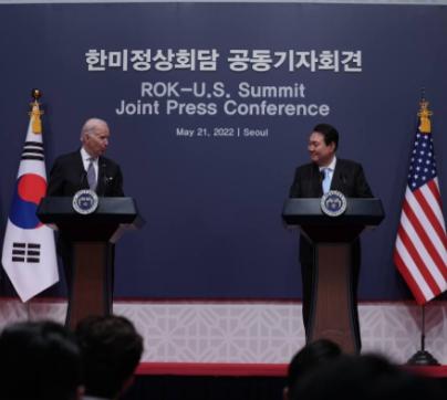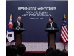 윤석열 대통령은 21일 조 바이든 미국 대통령과 정상회담을 마친 뒤 가진 한미 공동기자회견 모두발언을 통해? “바이든 행정부와 긴밀히 공조해 한반도의 평화를 확고히 지키면서, 북한이 대화를 통한 실질적 협력에 응하도록 외교적 노력을 펼쳐나갈 것”이라고 말했다.?