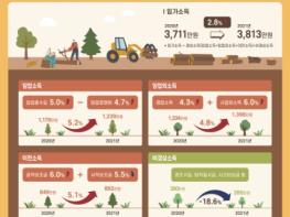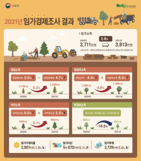 지난해 임가의 가구당 연간 소득은 3,813만 원으로 전년(2020년 3,711만 원) 대비 2.8% 증가한 것으로 나타났다.