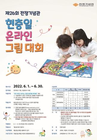 먼저 6월 1일부터 시작하는 『제26회 전쟁기념관 현충일 온라인 그림대회』는 전국 유치원생과 초등학생이 참여할 수 있는 그림 공모전으로 6월 30일까지 한 달간 공모한다.