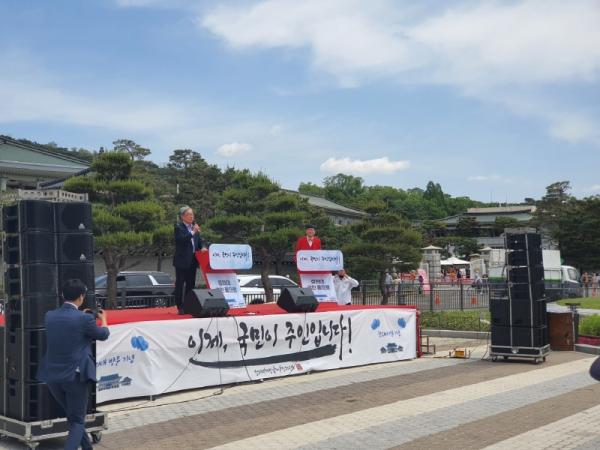 5월 10일 최재형 국회의원의 인사말로 시작된 청와대 개방 축하 국민 행사가 22일 일요일 오후 2시부터 서혜정, 남훈(본명 김남훈)의 설립취지낭독을 시작으로 청와대분수대 야외특설무대에서 제1회 청와대국민가요제(사회자 코미디언 김성남, 국민MC)가 74년 만에 청와대개방기념의 일환으로 주최 청와대국민가요제 조직위원회(윤영용 이사장)와 주관 국제엔젤봉사단(천세영 총재)의 진행으로 성대히 막을 내렸다.