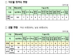 5월 13일과 14일 면접시험을 거쳐 발표된 올해 최종합격자는 행정직군 100명, 기술직군 61명이다.