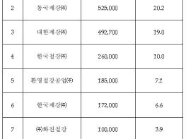 조달청의 관급공사에 공급되는 철근 단가계약 3차 입찰에서 지난 4월 실시한 2차례 입찰에서 유찰된 수량 전량(125만 톤)이 낙찰되었다.