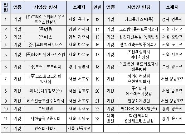 이에 따라 미이행 사업장(135개소) 중 영유아보육법령에서 규정한 명단공표 제외 사유에 해당되는 사업장(112개소)을 제외한 23개소가 명단공표 대상이 된다.