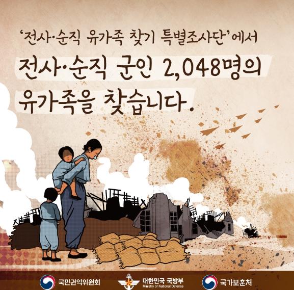 이를 위해 국민권익위는 국방부, 국가보훈처 등 3개 기관과 함께 지난해 12월 업무협약을 체결하고 ‘전사?순직 군인 유가족 찾기 특별조사단’을 출범하였으며,