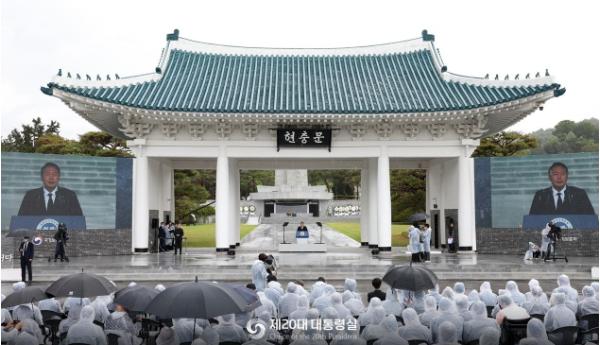 윤 대통령은 “국가유공자와?유족들을 더욱 따뜻하게 보듬겠다”며 “확고한 보훈 체계는 강력한 국방력의 근간이다. 공정하고 합리적인 보훈 체계를 마련해 조금이라도 억울한 분들이 없도록 하겠다”고 밝혔다.?