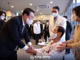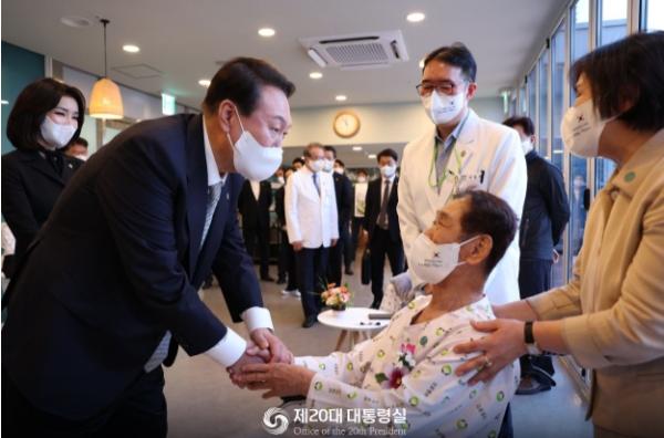 윤 대통령은 네 분의 국가유공자에게 현충일에 찾아뵙게 되어 반갑고 감사하다는 인사와 함께, 면회가 제한되는 병원 사정상 오늘은 병실 방문을 하지 못하지만, 투병중인 모든 국가유공자와 보훈가족의 쾌유를 빈다고 전했다. ?