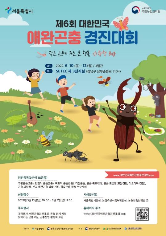 농촌진흥청은 서울시 농업기술센터와 함께 10일부터 12일까지 서울무역전시컨벤션센터(SETEC)에서 ‘2022 제6회 대한민국 애완곤충 경진대회’를 연다.