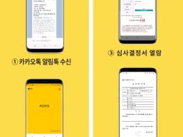 ‘심사결정서 모바일 전자문서 발송’은 공단이 심사결정서를 모바일 전자문서 형태로 청구인에게 발송하면, 청구인은 카카오알림톡과 카카오페이를 통해 심사결정서를 즉시 확인할 수 있다.
