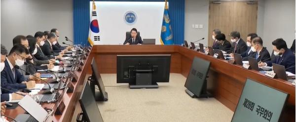윤셕열 대통령은 21일 2022년도 제28회 국무회의를 주재했다. 오늘 회의에서는 △대통령령안 19건 △일반안 2건 등을 심의·의결했다.