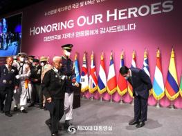 그러면서 “여러분들의 용기와 숭고한 정신을 받들어 대한민국도 국제사회에 책임 있는 일원으로서 자유를 지키는 데 역할과 책임을 다할 것”이라고 다짐했다.