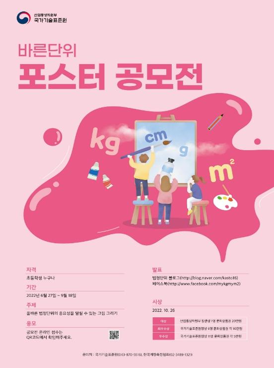 산업통상자원부 국가기술표준원은 6월 27일(월)부터 9월 18일(일)까지'2022년 바른단위 사용 공모전'개최한다고 밝혔다.