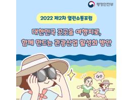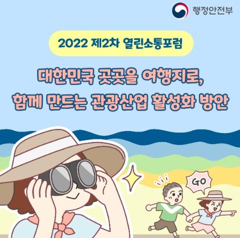 행정안전부는 6월 29일 오후 3시, 강원도 춘천(커먼즈필드)에서 "대한민국 곳곳을 여행지로, 함께 만드는 관광산업 활성화”를 주제로 '제2차 열린소통포럼'을 개최한다고 밝혔다.