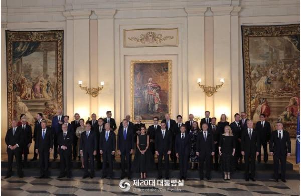 윤석열 대통령은 6월28일 저녁 펠리페 6세 스페인 국왕 부부가 주최하는 환영 갈라 만찬에 참석했다.