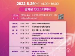 문화체육관광부는 한국콘텐츠진흥원과 함께 6월 29일 오후 2시, 광화문 콘텐츠코리아랩(CKL)에서 ‘문화 매력 국가 선도 케이 콘텐츠·온라인동영상서비스(OTT) 진흥 포럼’을 개최한다. 이 행사에서는 업계와 학계 전문가들이 참여해 코로나 이후 시대 산업 변화를 진단하고 한류 콘텐츠와 온라인동영상서비스 발전 방안을 논의한다.