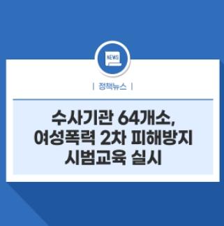 여성가족부는 올해부터 7개 부처 수사기관을 대상으로'여성폭력 2차 피해방지'전문강사 파견 시범교육을 실시한다.