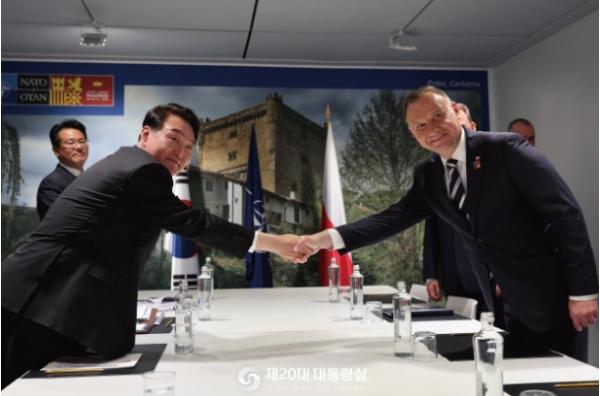 윤석열 대통령은 29일 안제이 두다 폴란드 대통령과 정상회담을 가지며 양국 간 실질 협력 강화 방안과 함께, 북핵문제를 포함한 다양한 국제 현안에 대해 의견을 나눴다.