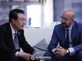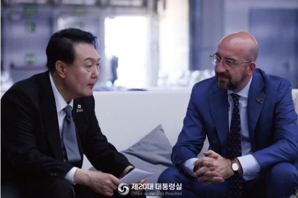윤석열 대통령은 나토 동맹국·파트너국 정상회의 참석 중 샤를 미셸 유럽연합(EU) 상임의장과 약식 회담을 가졌다. 양측은 한-EU 간 실질 협력 방안과 북한의 핵문제, 우크라이나 사태 등 국제 정세에 대해 의견을 교환했다.