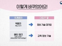 문화체육관광부와 국립국어원은 ‘에듀 테크’를 대체할 쉬운 우리말로 ‘교육 정보 기술’을 선정했다.