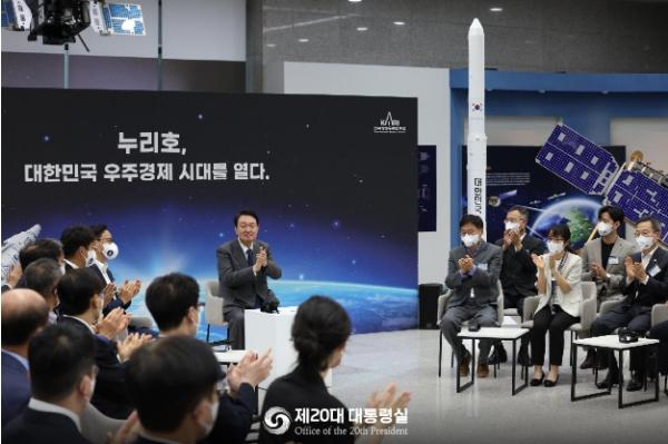 이 자리에서 윤 대통령은 연구진과 함께 누리호 2차 발사 성공을 축하하며 ‘우주경제 시대를 활짝 열어갈 것’을 다짐했다.