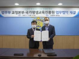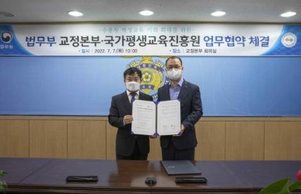법무부 교정본부와 국가평생교육진흥원은 2022. 7. 7.(목) 10:30 법무부 교정본부 회의실에서 수용자 평생교육 기회 확대를 위한 업무협약을 체결하였다.