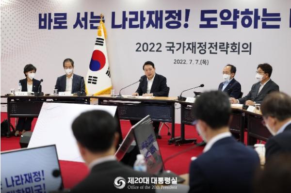 윤석열 대통령은 7.7일 국무위원, 여당 주요인사, 민간전문가 등이 참석한 가운데 ?2022 국가재정전략회의?를 주재했다.