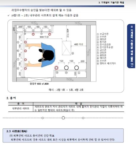 특히, ?기계설비 기술기준? 시행으로 인해 기계설비공사 시 점검, 보수, 교체 등 유지관리를 위해 충분한 공간을 확보하도록 규정하고 있는 기계실과 피트, 샤프트 등에 설치된 장비 등에 대하여 설계기술자가 쉽게 이해할 수 있도록 그림과 도면을 활용하여 설명한다.