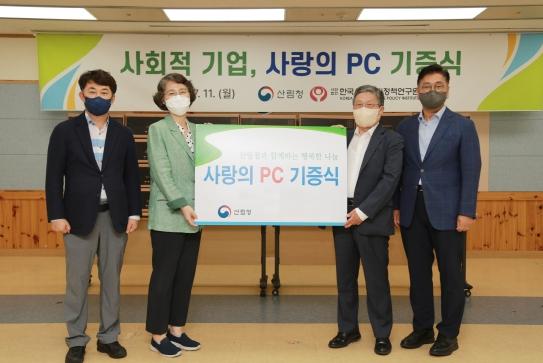 산림청은 11일 정부대전청사에서 컴퓨터를 비롯해 총 181점의 전산기기를 사회적기업인 (사)한국사회복지정책연구원에 무상으로 전달하는 ‘사랑의 컴퓨터 기증행사’를 가졌다.