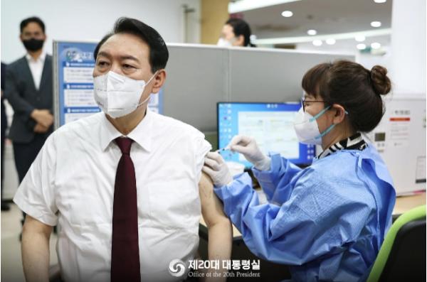 백신 접종을 마친 후 윤 대통령은 국민 여러분들의 많은 동참을 호소드린다고 말했다고 강인선 대통령실 대변인이 전했다.