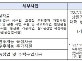 농식품부는 최근 농자재 가격 급등, 금리 인상 등으로 농가 경영 부담이 심화되는 상황에서 농가 금융부담을 완화하고 연체 등에 따른 신용도 하락을 최소화하여 안정적인 영농 활동을 지원하기 위해 기존에 시행 중인 금리 인하 조치에 이어 원금 상환유예를 추가로 시행할 계획이다.