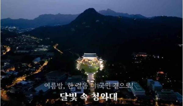 문화재청 청와대국민개방추진단과 한국문화재재단은 7월 20일(수)부터 8월 1일(월)까지 개최 예정인 청와대 야간 관람 프로그램 ‘청와대, 한여름 밤의 산책’ 행사의 주요 동선과 프로그램을 담은 영상을 청와대 개방 누리집을 통해 18일부터 사전 공개해 온라인 관람이 가능하게 했다.