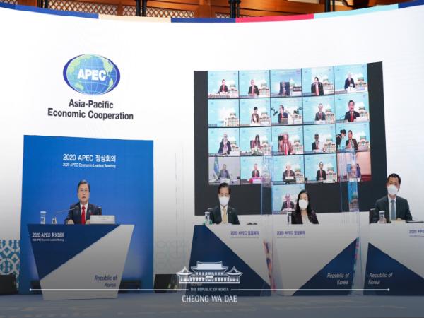 문재인 대통령은 20일, 세계 최대 지역협력체인 APEC(아시아태평양경제협력체) 정상회의에 화상으로 참석했다.
