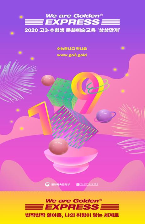 문화체육관광부는 한국문화예술교육진흥원과 함께 대학수학능력시험을 치른 고 3, 수험생들이 문화예술교육으로 자신의 꿈을 찾을 수 있도록 12월 3일부터 2021년 1월 15일까지 ‘2020 상상만개-반짝반짝 열아홉, 나의 취향이 닿는 세계로’를 비대면으로 운영한다.
